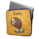 Cute curious funny brown owl cartoon illustration laptop sleeve
