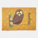 Cute curious funny brown owl cartoon illustration tea towel