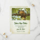 Save the date card with an adorable image of a brown squirrel standing on a tree branch looking at you with an inquisitive face.