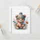 Custom greeting cards have a football theme with a feminine touch. Modern design features flowers and a cute bear holding a football. Great greeting cards for football fans. Customise the front and back of the card with your desired text. Use the template to create your own custom greeting cards.