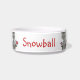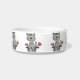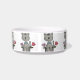 Cute cat food dish, with adorable country graphics of a grey and black striped cat, with flowers. Coral coloured custom text allows you to customise with your pet's name, for a personalised bowl your pet can be proud of. Makes a great gift idea.