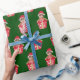 Customize your child's Christmas gifts from Santa with a funny customizable template of your kid wearing a Santa hat sitting in a gift box. Place a photo of your kid's face onto this adorable holiday pattern present wrap in red and green. A great way for personalizing children's gifts on Christmas morning.