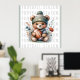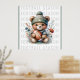 Custom poster has a football theme with a feminine touch. Great for football fans. Modern design has flowers with a cute bear holding a football. Customise with your desired text, name, or phrase. Use the template to create your own custom poster.