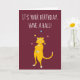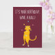 This cute greeting card is ready to be customised with your own message on the front and the inside so you can create a personalised card for any occasion. It features a cute cartoon illustration of a cat juggling balls set against a maroon coloured background.