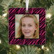 Cute Custom Name And Photo Pink Zebra Christmas Metal Tree Decoration