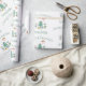 This custom Christmas wrapping paper features a cute nutcracker theme. An illustration of a Christmas tree is pictured with little gifts below it. A nutcracker toy soldier is standing on one side of it, with a sugar plum fairy fluttering above him. The Mouse King is printed on the other side. Little snowflakes fall around the tree. A sample greeting is printed above the image, with a name printed below in a whimsical green font. You can personalise the wrapping paper to include your own custom name or text.