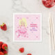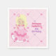 These adorable pink princess birthday party napkins feature a pretty blonde little girl wearing a beautiful pink ball gown. Personalise this cute children's party decor with your child's name and age in lovely purple between the fun heart pattern.