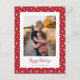 Cute custom red photo holiday postcards featuring stars and a beautiful festive script title. Easily personalise these red photo holiday postcards with your image and a family name. Custom Merry Christmas title available inside the design tool - make it visible by customising this template further. The background, title and text can be personalised to any colour.