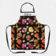 Cute, customisable apron with black text and black background, featuring hand drawn and digitally designed colourful, foil textured, muffins, croissants, and cinnamon rolls.