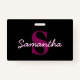 Cute Customisable Pink & Black Monogram Script ID Badge