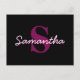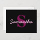 Cute Customisable Pink & Black Monogram Script Postcard