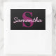 Cute Customisable Pink & Black Monogram Script Rectangular Sticker