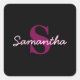 Cute Customisable Pink & Black Monogram Script Square Sticker