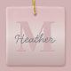 Cute Customisable Pink Monogram & Your Name Script Ceramic Ornament