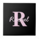Cute Customizable Monogram | Light Pink & Black Ceramic Tile