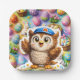 Cute, cute the owl Square Easter egg party paper Plate