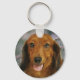 Cute Dachshund (Brown Long Haired) Wild Flowers Key Ring