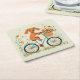 Cute Dachshund Dog Biking Spring Flowers Square Paper Coaster
