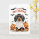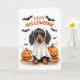 Cute dachshund "Happy Halloweenie" card features a cute ghost Dachshund with cute pumpkins. Personalise with your custom text on the inside of the card.