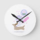 Cute Dachshund Weiner Dog Lover Party Pink Round Clock illustrated by international designer Kathrin Legg