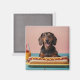 Add a touch of whimsy to your fridge with this Cute Dachshund With Hot Dog Magnet. This adorable magnet features a charming dachshund playfully posing with a hot dog, perfect for dog lovers and those who enjoy a bit of humour in their décor.