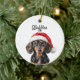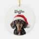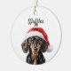 Cute Dachshund with Santa Hat Ceramic Ornament