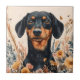 Cute Dachshund with Wildflowers Painting Ceramic Tile