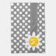 Cute Daisy on Dark Grey Polka Dots Tea Towel