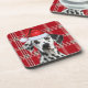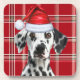 Cute Dalmatian Santa Dog Red Holiday Plaid Coaster