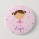 Personalised Button featuring a cute dancer ballerina with a floral background. Cute and fun design for special for girls who loves ballet. Custom monogrammed gift. For no personalisation, delete sample text and leave blank.