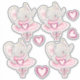 These adorable contour stickers feature a cute grey elephant dressed up in a pink tutu and ballet slippers. She holds a pink heart with a floral border. Along with the four elephant stickers are four individual heart stickers. Perfect for Valentine's Day or baby showers!