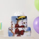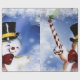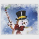 A cute snowman dancing with a candy cane in the snow. Snowflakes decorate the frame. Click on Customise to personalised the gift product!