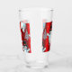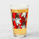 This cute Christmas glass has a pattern of snowmen, dressed in top hats and scarves dancing for joy in the snow. All around them are snow and silver Christmas trees. Behind them all is a brilliant, vivid red background. This cute, festive glass will look great on the Christmas table this year.
