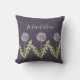 These cute dandelion pillows feature three green leaf dandelions in a row on an eggplant purple background. Personalise with your favourite name or phrase!