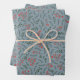 Farmhouse country dark dusty blue, red and dark green foliage, wreath, leaves, greenery, rustic pattern cute holiday gift wrapping paper sheets. Set of 3. Great for Christmas and the holiday season.