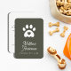 Cute modern Pets Dogs Pet Sitter Dog Walker Business Card, fully customisable text elements to fit your pet care business like dog groomer, dog trainer, small pets care - features a cute heart paw print on a dark green background but all colours can be changed in the design tool!