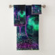 Cute dark purple green faux glitter monogram towel set. Upgrade the look of your bathroom decor with a girly, trendy and modern towel set. It makes the perfect sweet 16 birthday, wedding, bridal shower, anniversary, baby shower or bachelorette party gift for someone that loves glam luxury and chic styles. Whether for valentines day, Christmas or any occasion in general this towel set will make a great gift idea for any girl or woman who loves modern sparkly elegance. PLEASE NOTE: These are flat printed graphics - no real glitter, jewels or raised parts.