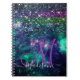 Cute dark purple green faux glitter monogram notebook