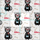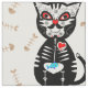 Cute Day of The Dead Sugar Skull Cat Meow Print Fabric