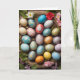 This festive Spring Easter greeting card features a variety of quite colourful eggs in a basket surrounded by pretty flowers. You can edit the text inside this card to make this greeting feel more personal.