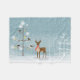 Cute deer with red scarf and birds in snowy woods. Customisable fleece blanket template.