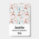 A name tag with an adorable Christmas pattern. Cute winter deer with antlers prancing around a forest of trees and grasses.