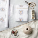 Christmas Wrapping Paper with a Cute Deer in gingerbread Christmas wreath in blue and beige for a little boy. Easily personalise the text. - Kate Eden Art