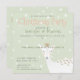 NewParkLane - Christmas Party Invitation, with a cute deer and a snowy, sage green background.