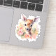 Contour sticker with a beautiful illustration featuring a cute deer. Surrounded by pink roses and flowers.