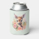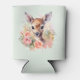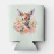 Can cooler with a beautiful illustration featuring a cute deer. Surrounded by pink roses and flowers.