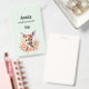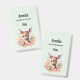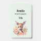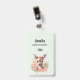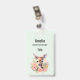 Name badge with a beautiful illustration featuring a cute deer. Surrounded by pink roses and flowers.