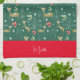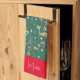 Cute deer with Christmas trees and snowflakes Tea Towel