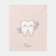 This light pink fleece blanket features a cute botanical tooth illustration and is personalized with a name in a script font.