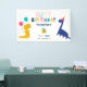 Cute and colourful whimsical dinosaur birthday party "Thank you for stomping by." personalised banner. Hand-drawn illustration by Kristine Lee www.kristineleedesigns.com